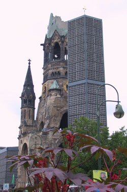 The ruins of Kaiser Wilhelm's Church with its new tower -- The old Cathedral (Dom), and the Ostankino TV Tower