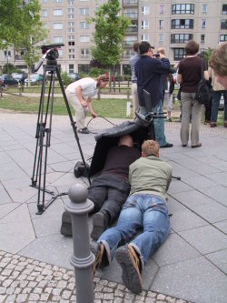today's parking lot. On the right: Pawel Gorny helped a camera crew immortalize the area for their documentary.