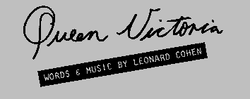 german translation by Anna von Cramer-Klett and Anja Hauptmann Königin Victoria mein Vater und all sein Tabak liebten dich ich lieb dich auch in all deinen Formen die schlanke, reizlose Jungfrau, die zwischen deutsche Bärte schwebte die knauserige Herrscherin über riesige rosa Landkarten die einsam Trauernde, die einen Prinzen beklagt Königin Viktoria ich bin kalt und verregnet ich bin schmutzig wie das Glasdach in einer Bahnstation ich fühle mich wie eine leere Gußeisen-Ausstellung ich möchte Verzierungen an allem denn mein Schatz ist mit anderen Kerlen gegangen Königin Viktoria hast du eine Strafe unter der weßen Spitze wirst du sie abkanzeln und sie zwingen, kleine Bibeln zu lesen wirst du sie mit einem mechanischen Korsett verprügeln Ich will sie rein wie die Macht ich will ihre Haut leicht muffig von Petticoats wirst du ihr die liederlichen Bidets aus dem Kopf waschen Königin Viktoria die moderne Liebe verwöhnt mich nicht sehr Willst du nicht in mein Leben kommen mit deinem Kummer und deinen schwarzen Kutschen und deiner makellosen Erinnerung Königin Viktoria das 20. Jahrhundert gehört dir und mir Wir wollen zwei finstere Giganten sein um nichts weiter einsam durch unsere Partnerschaft die Reagenzgläser verfärben in den Hallen der Wissenschaft die ungebeten bei jeder Weltausstellung aufkreuzen beladen mit Sinnspruch und Tadel und die sternengeblendete Touristen aus der Fassung bringen mit unserem unvergleichlichen Verlustgefühl